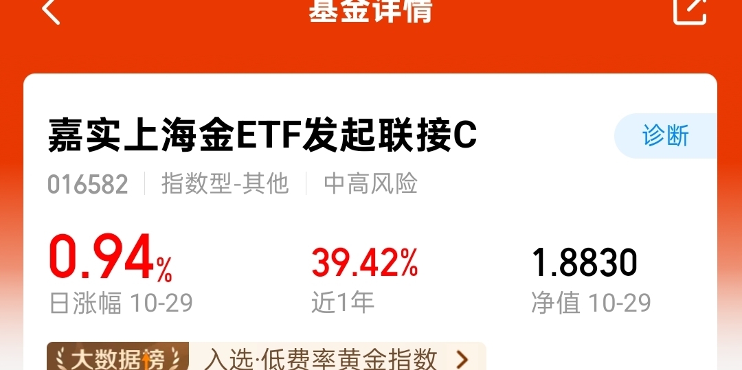 黄金市场震荡下跌,不过我依旧保持对黄金的看好,短期震荡不能忽视长期市场,从长期来看黄金上涨的逻辑依旧存在,了解到韩国央行考虑自2013年以来首次购买黄金,叠加全球货币的泛滥和去美元化趋势,将继续支撑贵金属价格中枢上行,今天加仓$嘉实上海金ETF发起联接C$ 1000,这个产品有七免操作起来灵活方便,近期波动也比较小。