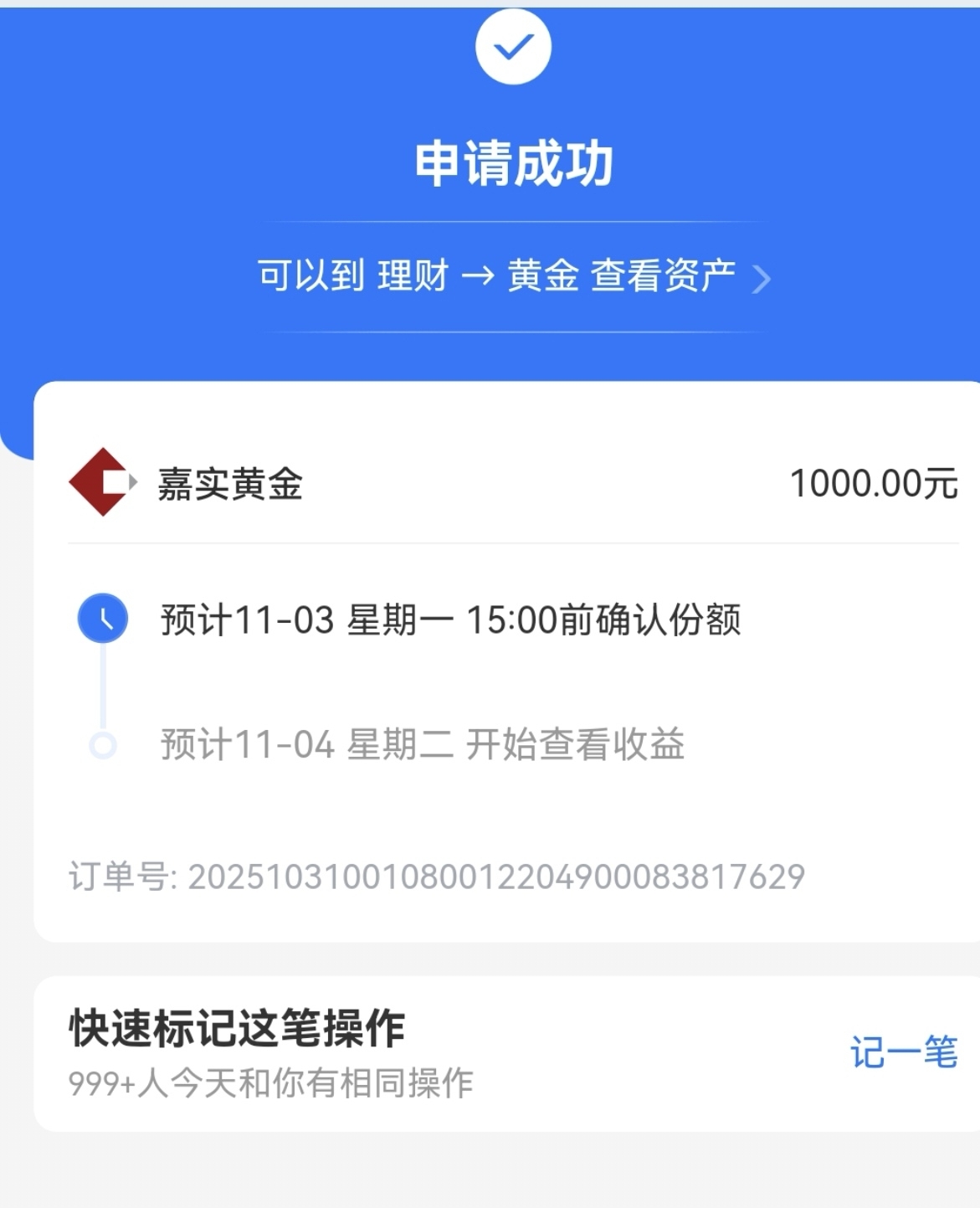 黄金反弹了,不错,大黄从1000跌到880,再反弹到920。甚至可以反弹到940,950,但是你想让它几天之内再回到1000,那基本上不太可能。黄金的规律就是长时间的横盘,然后脉冲式的上涨。所以回调不要慌,后面可能还要降息,各国央行也都在买黄金,再加上国际形势总有不确定性,这些都对金价有支撑。短期的涨跌不用太在意,稳住心态最重要,继续加1000元$嘉实上海金ETF发起联接C$ 嘉实上海金在本轮回撤中跌幅最小,嘉实这只防守能力还可以,而且7天免赎回费,操作起来也更方便。