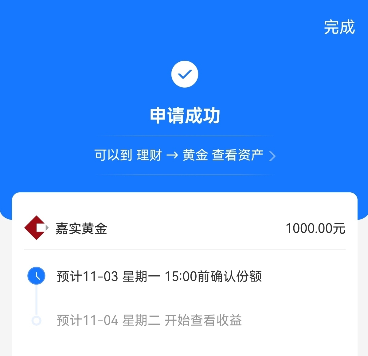 黄金市场在连番调整后,今天终于回暖了,盘面止跌企稳的特征愈发明显,前期积累的回调压力也已充分释放。 十月美联储降息,将为黄金行情提供坚实的基本面支撑,市场当前也迫切需要一轮估值修复;同时,黄金当前的底部支撑力极强,短期调整并非行情的终结,反倒更像是为后续的上涨行情“蓄力储能”。 正因如此,我打算今天继续加仓$嘉实上海金ETF联接C$ 。无论是核心投资逻辑,还是黄金本身的基本面,都没有出现实质性变化,后续我依然看好黄金的资产配置价值,以及其行情的后续表现。