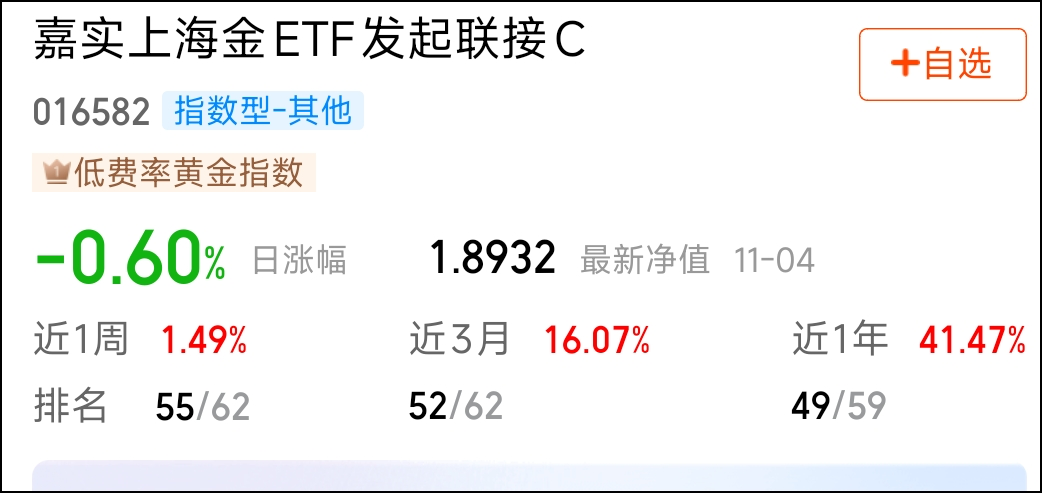 目前金价跌幅1个多点,全球市场下跌,今天分化较多,目前作为$嘉实上海金ETF发起联接C$ 持有人,讨论区现在有菜包可以薅一波,记得薅一波啊,不要错过这个机会,这个还是7免的,方便灵活!黄金资产来说还是看涨的,前期消化太多了,短暂的资金出逃,耐心等待吧,我相信年底黄金有空间呢!