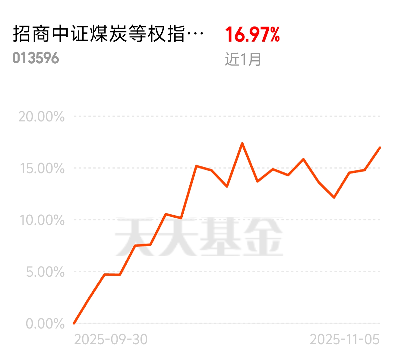 近期煤炭价格一路走高,行业热度持续升温。招商中证煤炭等权指数C昨日日涨幅1.88