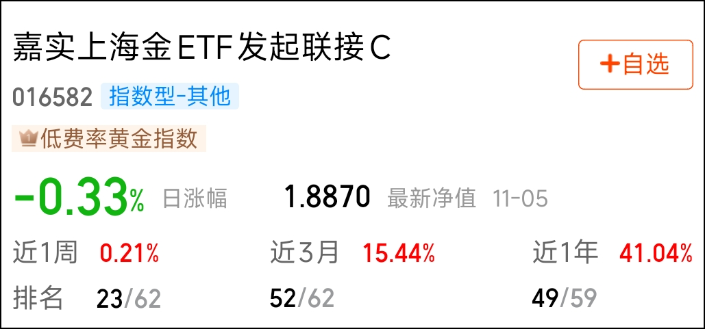 近期黄金都是保持震荡趋势,今天小涨0.5%左右吧,作为嘉实持有人$嘉实上海金ETF发起联接C$ 现在还有菜包可以薅一波呢,可以薅一波呢,黄金去年在600多,今年一路高歌猛进到900多,后悔去年没有买入呢,我今年买入一些当存钱了,嘉实黄金还是7免呢,特别的方便呢!