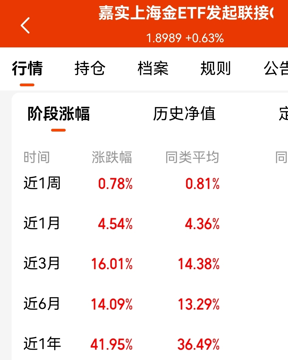 最近一直都有在配置黄金,黄金走势还是很不错的,深受人们的喜爱,全球还在加速买入黄金,全球黄金ETF连续五个月实现资金净流入,10月吸金82亿美元,推动其总资产管理规模增长6%,达到5030亿美元的月末新高,今日继续加1000$嘉实上海金ETF发起联接C$ ,近一个月涨幅4.54%,近三个月涨幅16.01%,近一年涨幅41.95%,目前央行购金维持高位为金价提供中期支撑,短期金价或延续整理格局,中期趋势仍偏多头,可以布局起来。