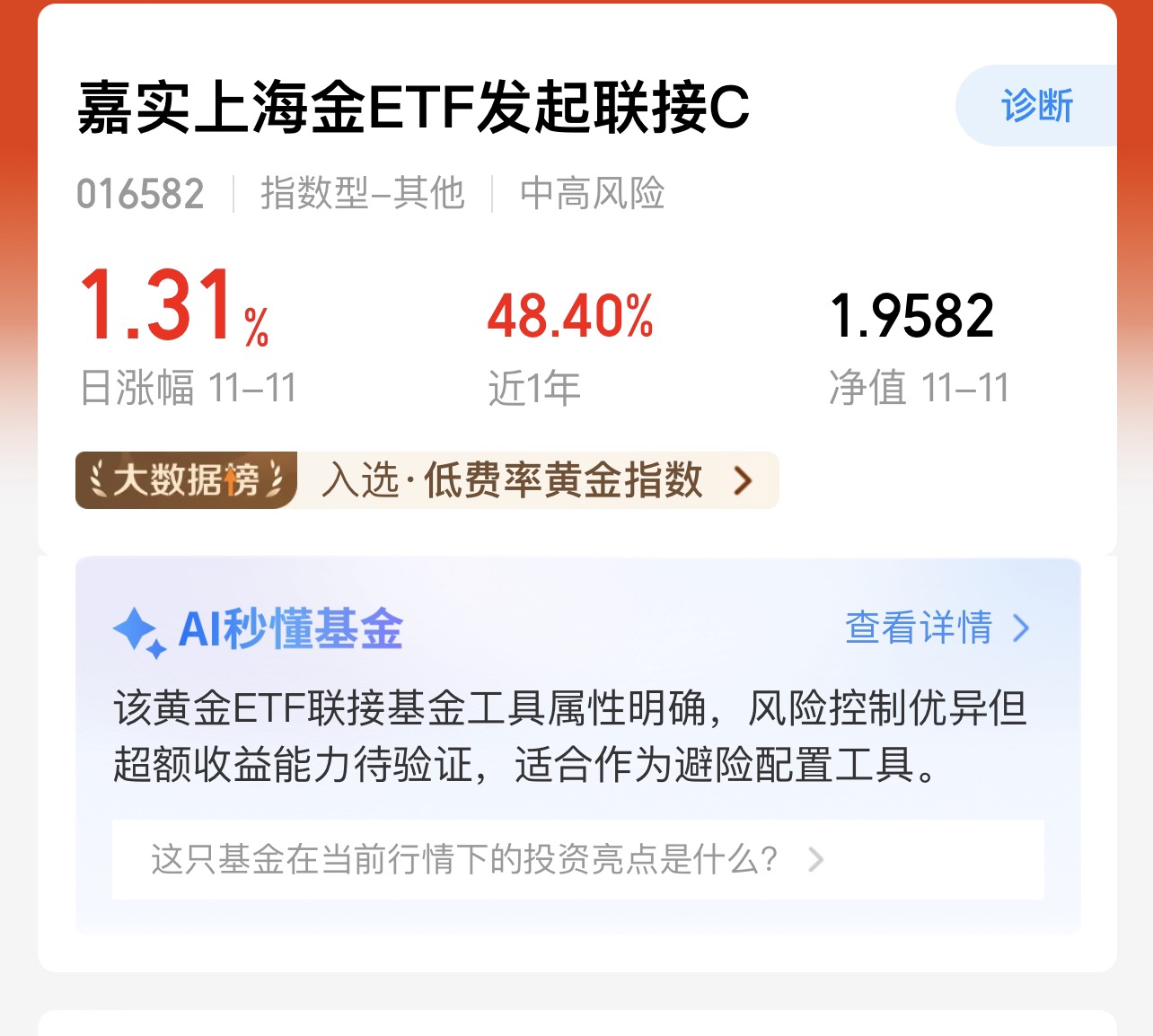 25年黄金牛市趋势未改,虽短期回调但中长期受降息、需求支撑,仍是优质配置资产。$嘉实上海金ETF发起联接C$ 费率低。现在持有还有菜包:100 元以上领 0.58 元红包,1000 元以上领 0.88 元,活动周度更新。本周上车就能参与,没领到的下周可再试,把握黄金行情我就靠它了