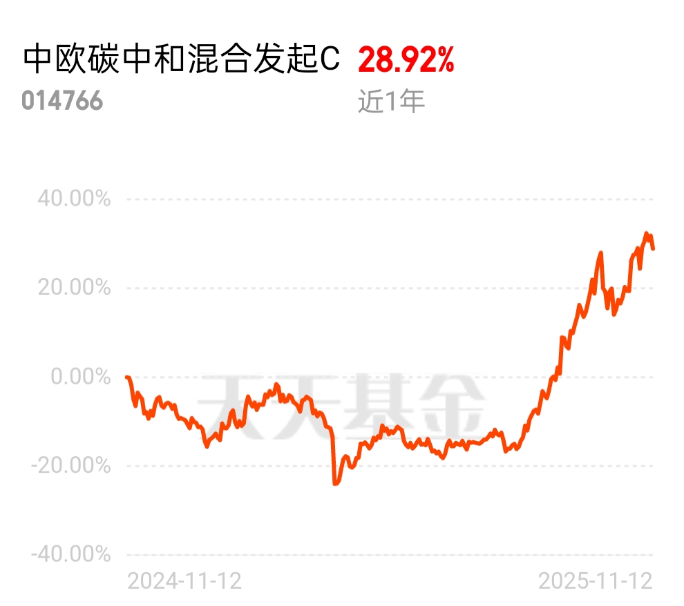 现在市场都在抢新能源相关标的,储能、电池板块涨得停不下来,中欧碳中和混合C太能打