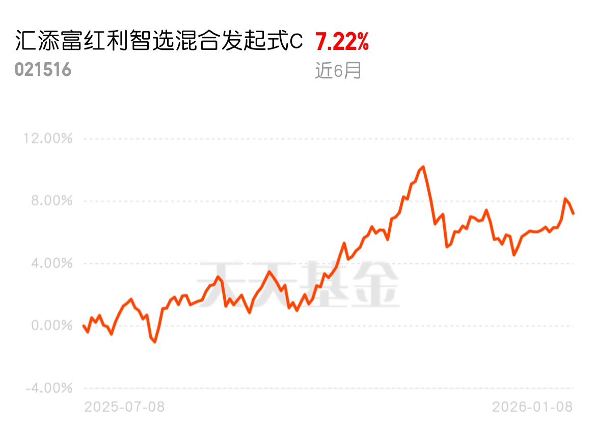 市场流动性改善,M1-M2 剪刀差收窄,资金活化,春季躁动的资金面充足,红利资产受益。汇添富红利智选混合发起式 C 近 6 月 7.22%,主动配置油运板块赶上领涨行情,地缘冲突带来持续催化,25 年业绩稳稳的,低位建仓不踩空,跟着经理定投更安心。$汇添富红利智选混合发起式C$