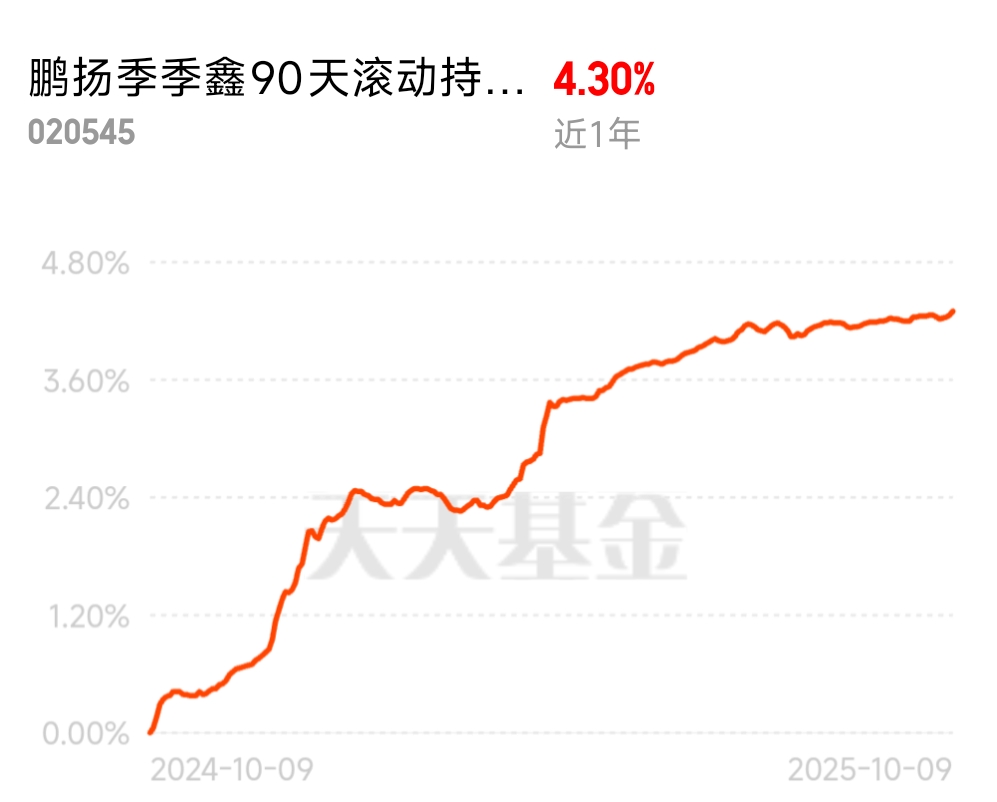 股市开始调整了,对于稳健投资的我来说,还是更适合债基,我的$鹏扬季季鑫90天滚动