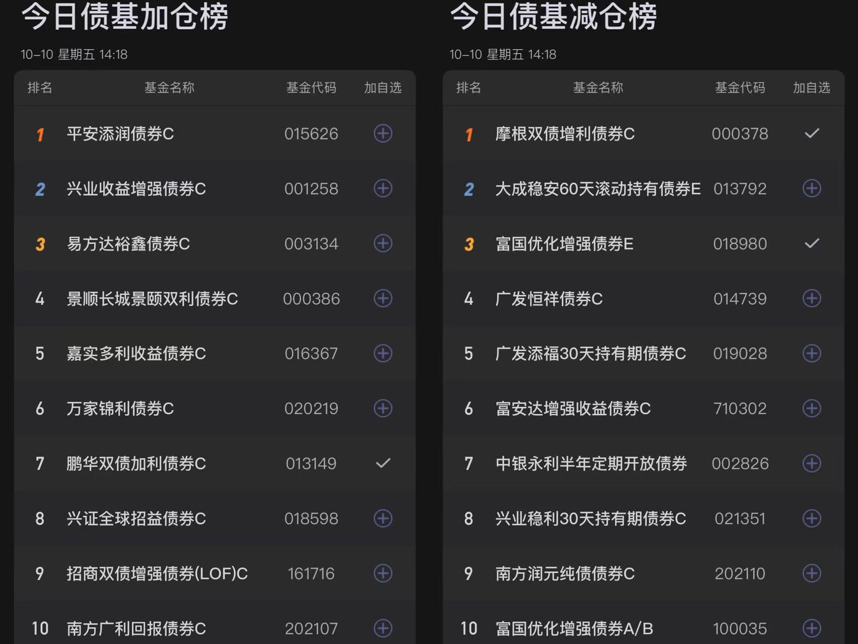 截止14点25分,华子碎12个,南方中债碎2个,方正富邦鸿远碎17个,富国优化增强碎个15-25个,中邮恒利碎5-15个,最终数据已17点收盘为准。