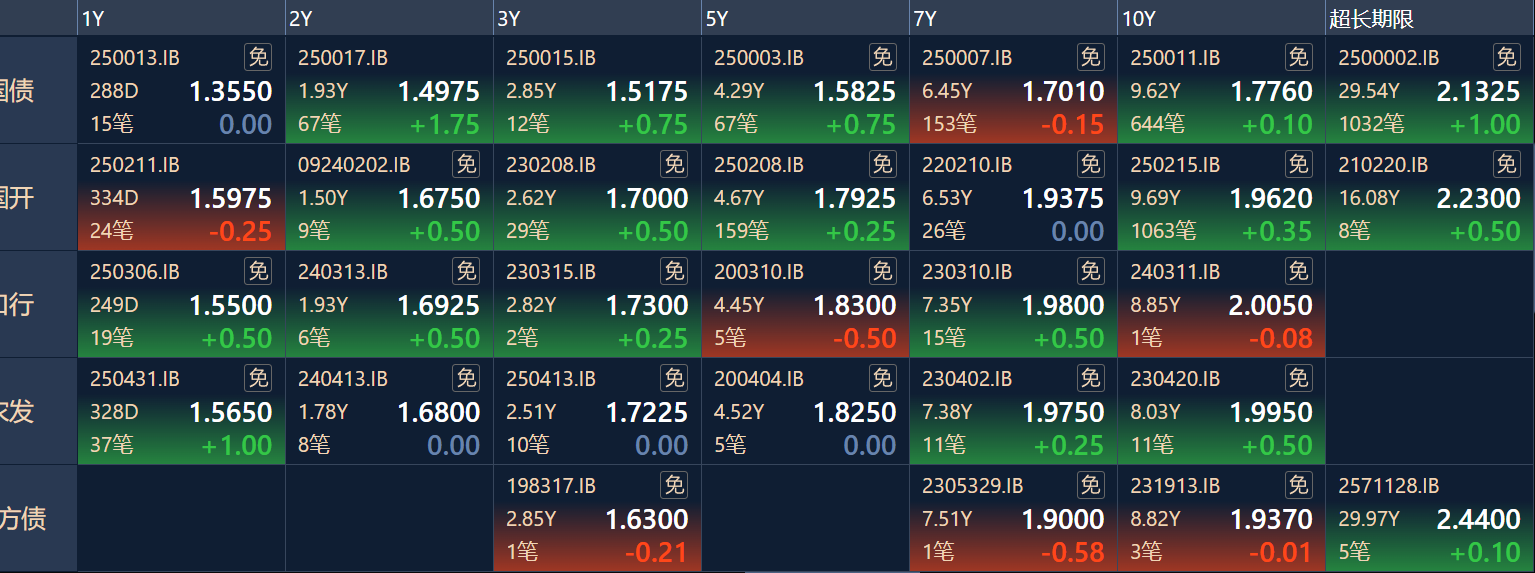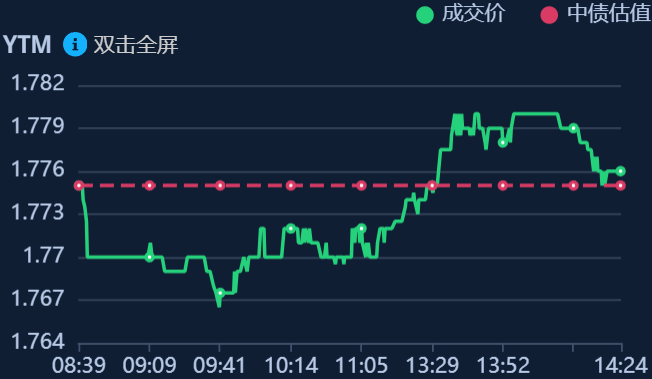二、十年期国债收益率:1.776 0.001%(国债收益率越涨,债市越跌,两者反向关系)