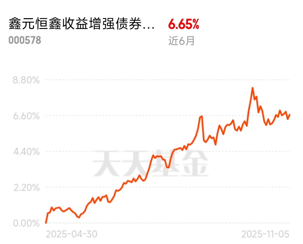 债市经过前期调整,不少优质标的估值回归合理,后续修复空间值得期待。鑫元恒鑫收益增强债券A近6个月收益6.65%,表现亮眼,现在正是低位布局的好时机,果断加仓跟着赚一波。