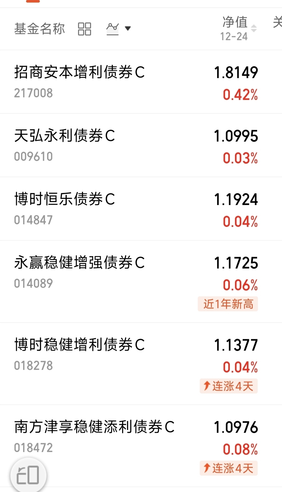 $招商安本增利债券C$ 昨天又收了42个蛋,今年来一直在创新高。长期的表现做到了涨多跌少。