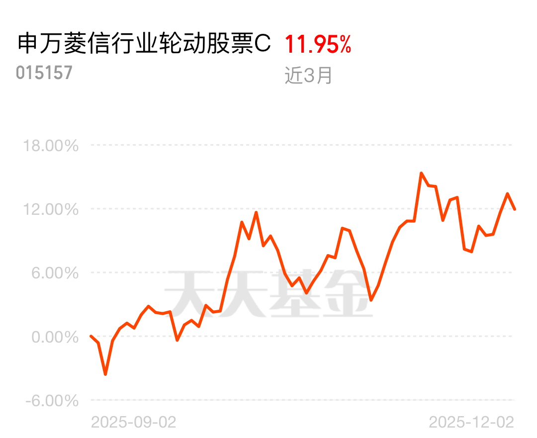 国内基建投资加速,带动有色需求增长,板块今天继续上行。申万菱信行业轮动 C 以有色资源股为主,近 3 个月业绩亮眼,跑赢多数同类,风险控制能力出色,现在布局性价比拉满。