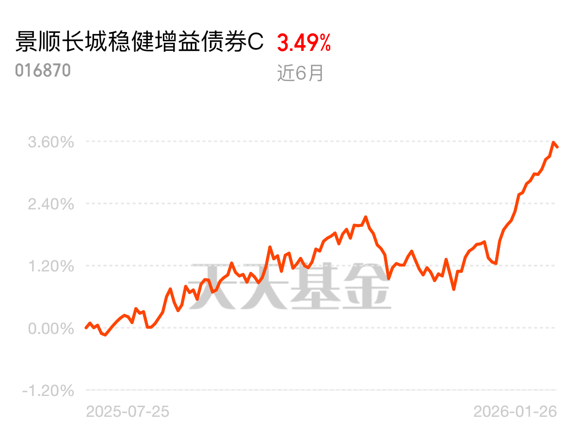 景顺长城稳健增益债券 C 这波表现太顶了,近 6 月 3.49% 一路向上走,1 月交易日仅 2 天跌,涨多跌少的节奏太合心意,守着债基的稳当,还能偶尔享股基的爆发,后续依旧看好,就等上车的机会$景顺长城稳健增益债券C$
