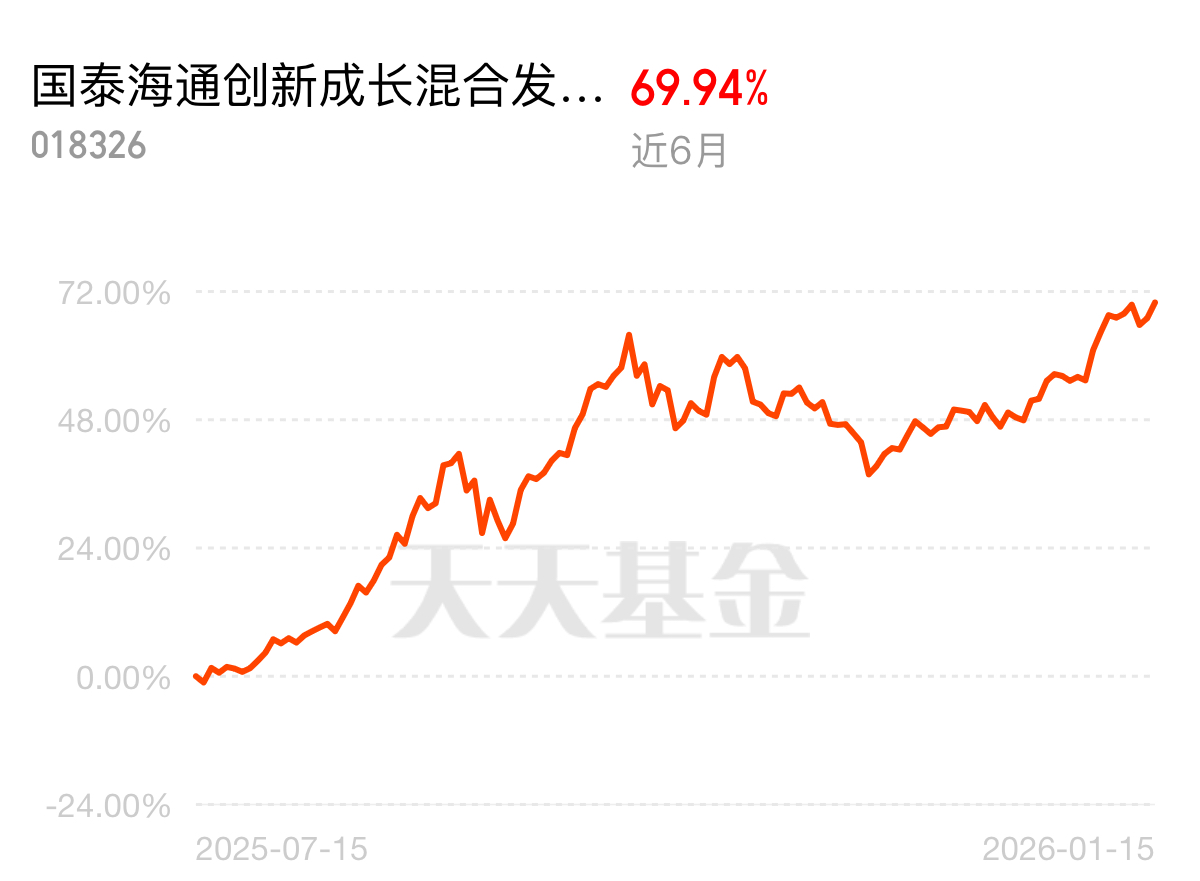 存储芯片迎超级牛市,国泰海通C动态调仓不吃鱼尾,重仓高景气赛道,近六月收益69.94%领跑同类。