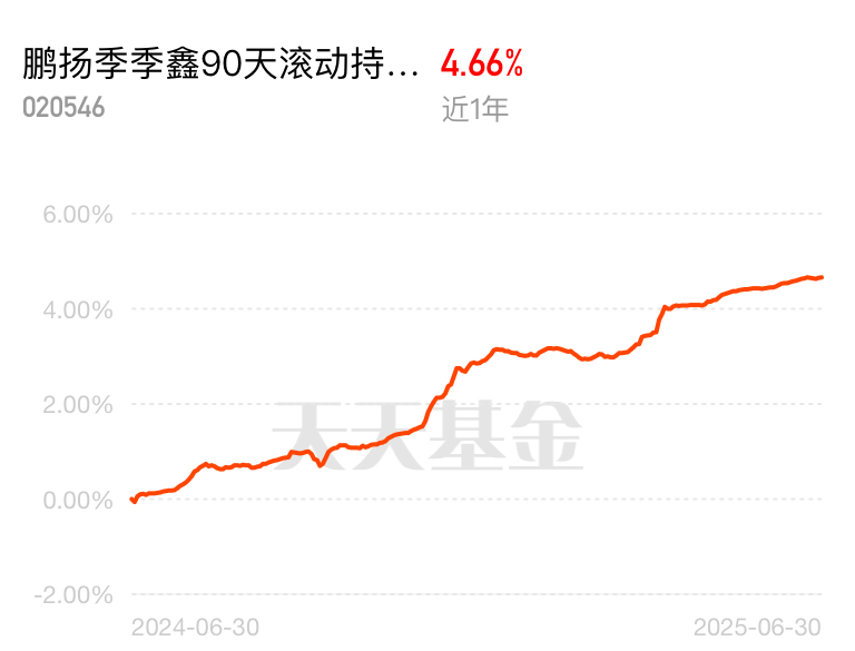 别人跌它也能涨,昨天收蛋1个,这个$鹏扬季季鑫90天滚动持有债券C$厉害啊,三个