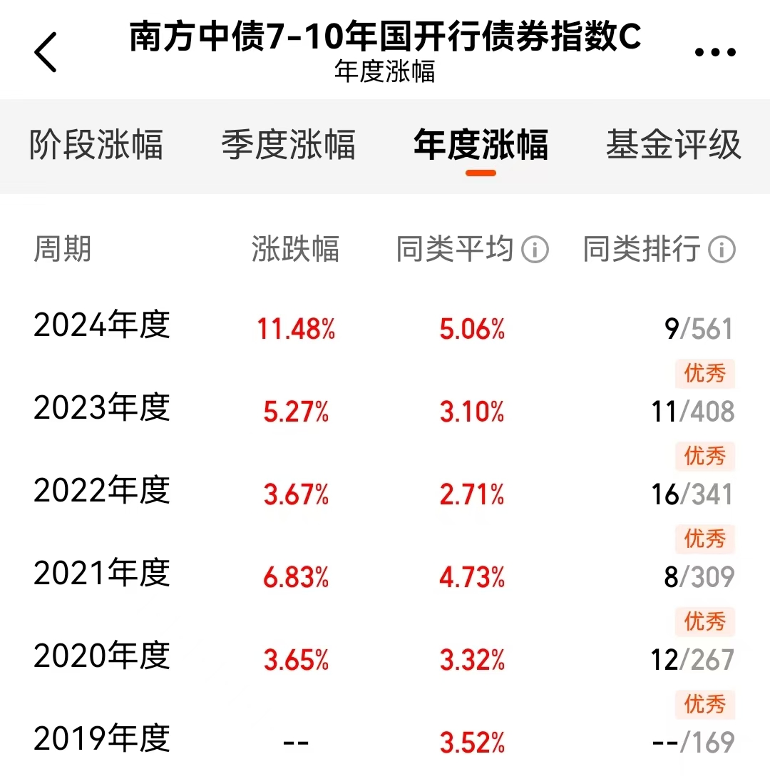 这个$南方中债7-10年国开行债券指数E$(013594)这类产品或许不会让你一天惊喜,但长期回报却相当可以的。最新数据,它近一年的收益率接近4.67%,在纯债基金中排名前20%,近三年年化更是超过5.4%,位居同类前10%。这类产品与市场行情的相关性较低,能有效降低账户整体波动。这种慢就是快的思路,反而让我拿得住、赚得稳。#科技热点摊开业啦#