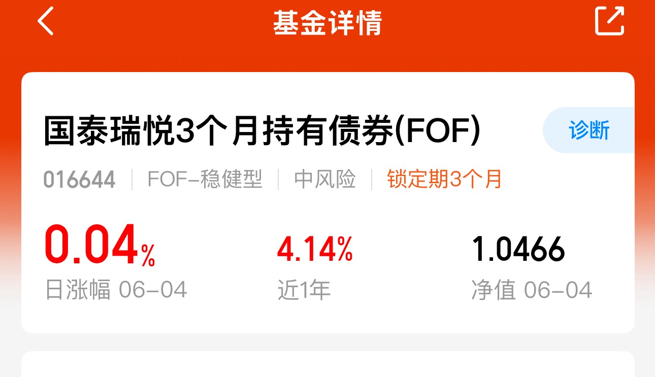 发现$国泰瑞悦3个月持有债券(FOF)$ 这只基金有意思,是一个FOF,持仓种类也是非常的灵活,按照投顾的思维管理的产品,这样的产品有个好处就是能够在低位布局,高位止盈。