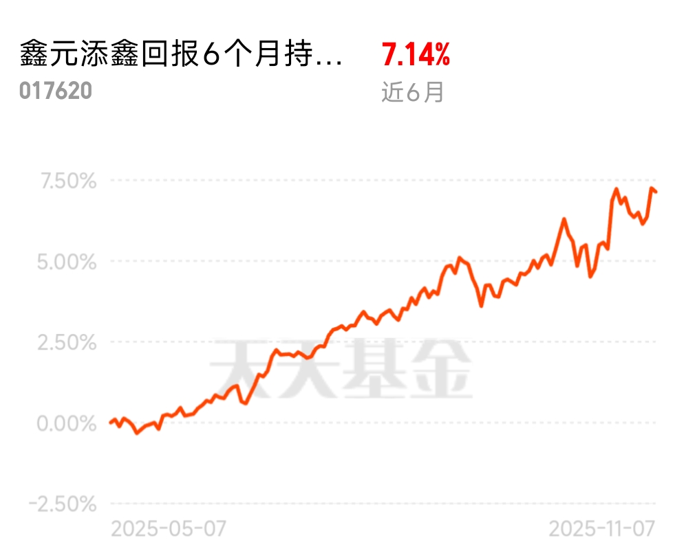 今年公募基金整体盈利火爆,不少人都靠理财赚了一笔。鑫元添鑫回报6个月持有期混合C表现很亮眼,近6个月收益达到7.14%,不用频繁操作,持有期设计也省心,想稳稳拿收益的可以多关注。$鑫元添鑫回报6个月持有期混合C$