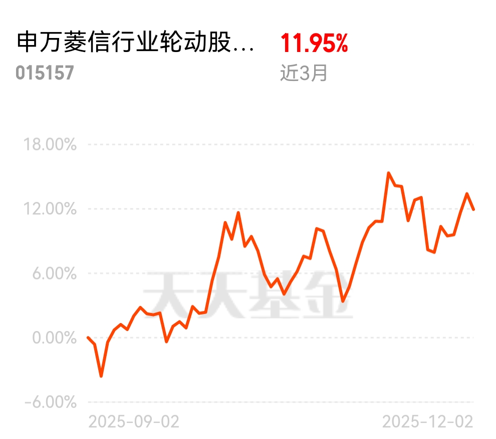 国内基建投资加速落地,带动有色需求稳步增长,板块今天持续上行势头很足。申万菱信行业轮动 C 聚焦有色金属资源股,近 3 个月表现亮眼,跑赢多数同类,风险控制能力突出,当前正是布局的好时机。$申万菱信行业轮动股票C$