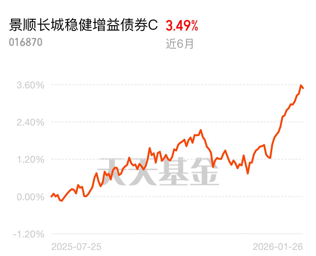 景顺长城稳健增益债券 C 是真的越走越顺,近 6 月 3.49% 收益步步向上,走势完美一直没跑偏,1 月就 2 天小跌,涨多跌少超合心意,既有债基的稳健,又能偶尔有股基的爆发,继续看好,等上车机会$景顺长城稳健增益债券C$