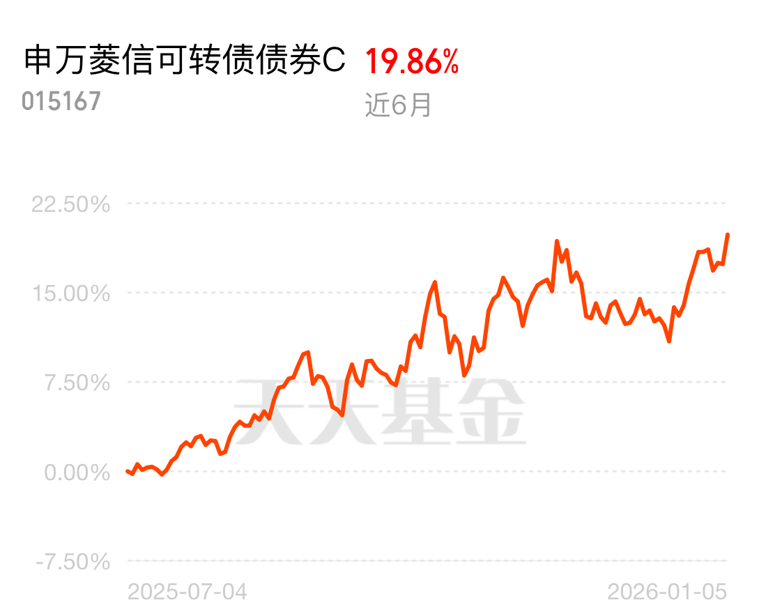 转债市场 “僧多肉少”,优质产品赚钱效应十足,行情持续向好。申万菱信可转债 C 近 6 月 1986 个蛋,近期排名同类前列,近一年涨 28.9%,有债底保护还能赚股票弹性,配置制造业、电池赛道,现在入场不晚。$申万菱信可转债债券C$