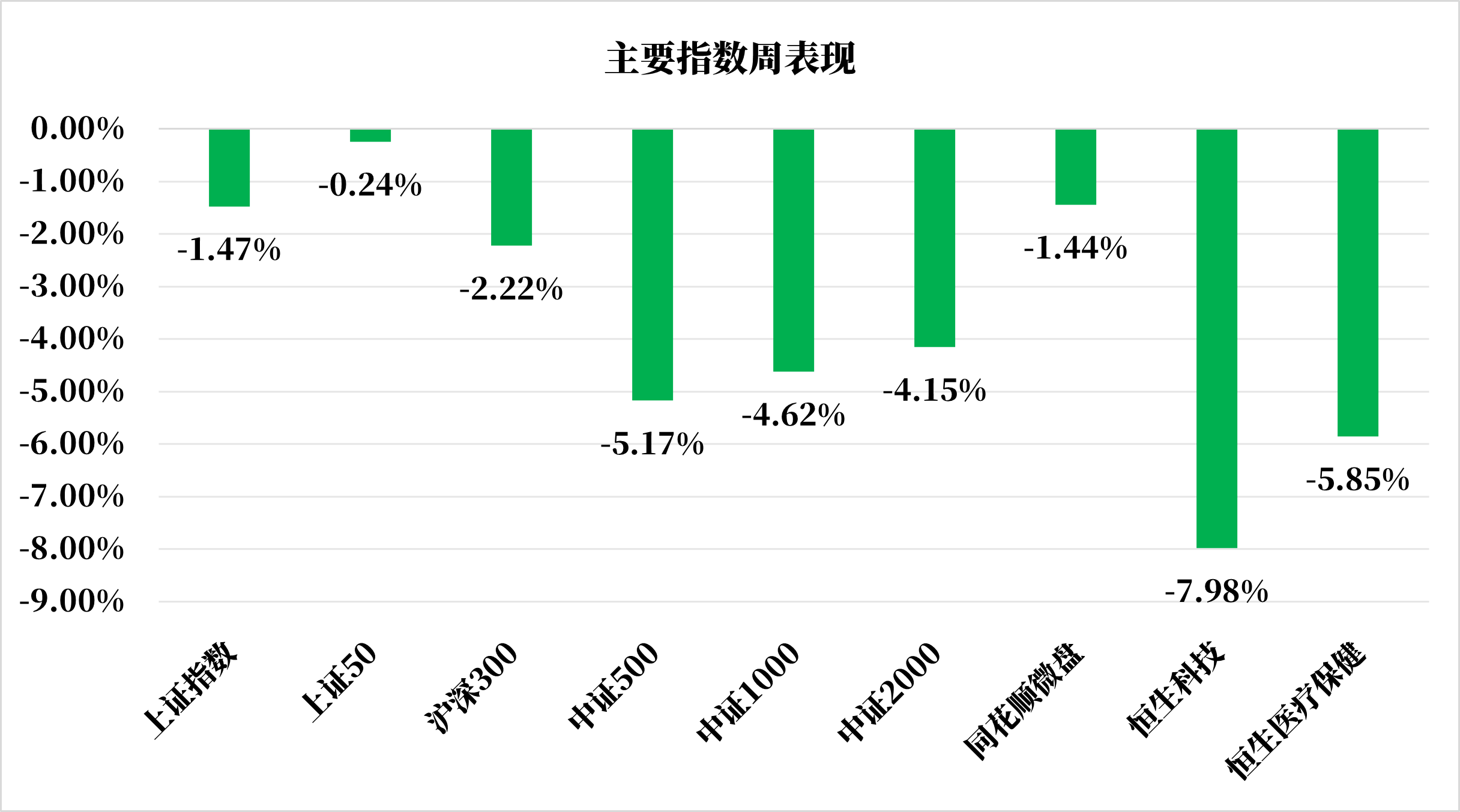 港股方面上周下挫则更为明显,恒生科技、恒生医疗保健指数延续此前的回调,验证了前期我们对高位科技股存在阶段性回调压力的判断,但本轮科技牛市可能还未结束,可以关注后续市场机会。