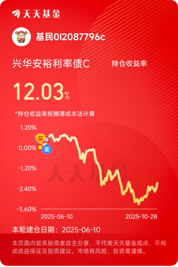 如今,每周打开账户确认定投成功,看着华安裕利率债C的持仓份额稳步增加、收益缓慢累积,我更加确信:投资无需追求“极致精准”,选对节奏、选对基金,然后用耐心等待时间的回报,就是最适合普通人的投资智慧。@兴华基金