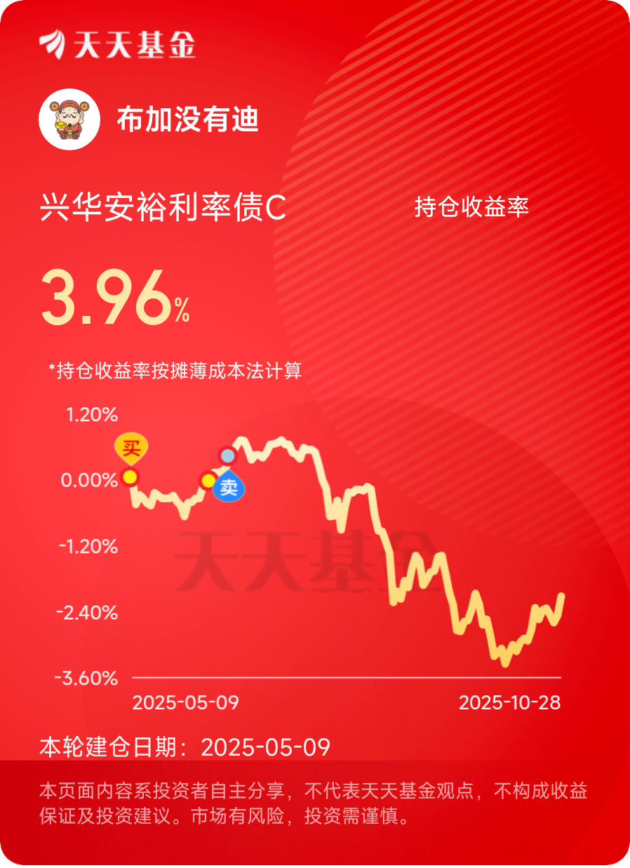 市场永远充满不确定性,但“纪律性定投+优质低风险标的”的组合,是普通投资者应对波动的可靠武器。选择周定投,是选对了投资节奏;持有兴华安裕利率债C,是选对了财富伙伴。这条路,我会坚定地走下去。@兴华基金 #晒收益#