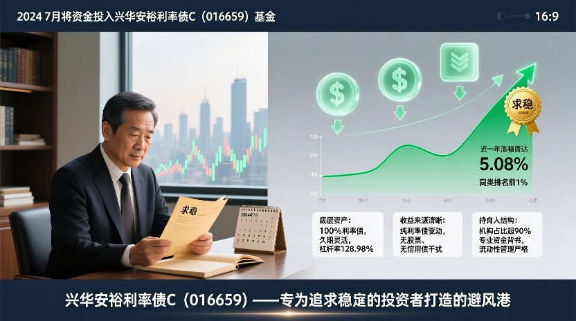 2024年7月,我抱着“求稳”的心态买入了兴华安裕利率债C(016659),彼时股市震荡,债市却悄然走出一波慢牛行情。作为一只纯利率债基金,它不碰股票、不掺杂信用债,持仓集中于国债和政策性金融债,风险等级中低,仿佛为焦虑的投资者量身定制的“避风港”。