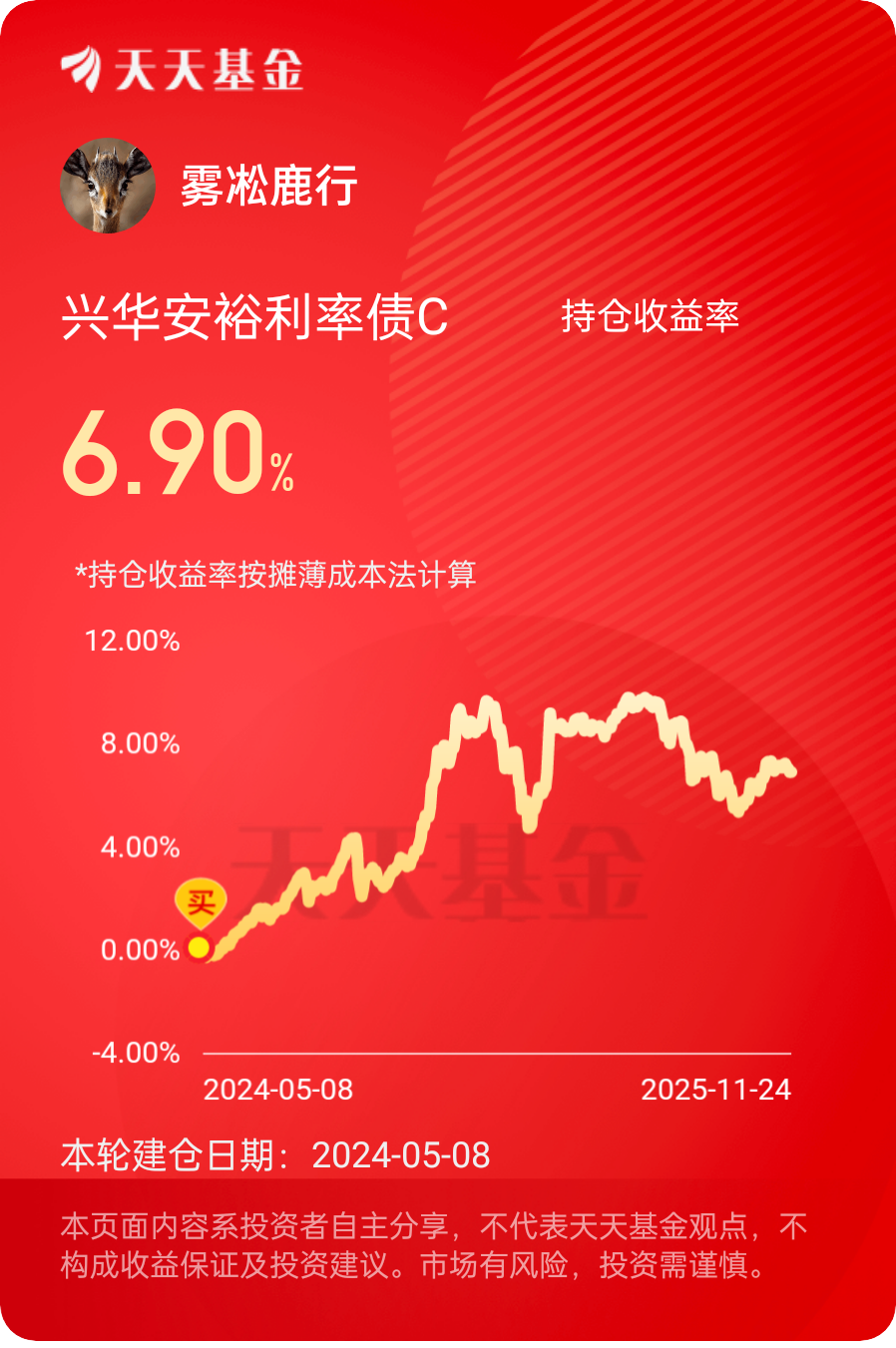 长期来看,周定投利率债基的方式,既契合我对投资节奏的把控,又能通过利率债的弹性和灵活加仓策略,在控制风险的前提下把握市场机会。投资的核心在于坚持与适配,适合自己的投资方式才能让人从容应对市场波动,而周定投利率债基,正是我在稳健投资道路上的坚定选择。