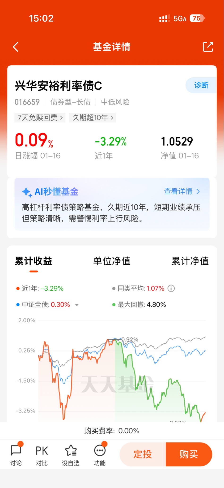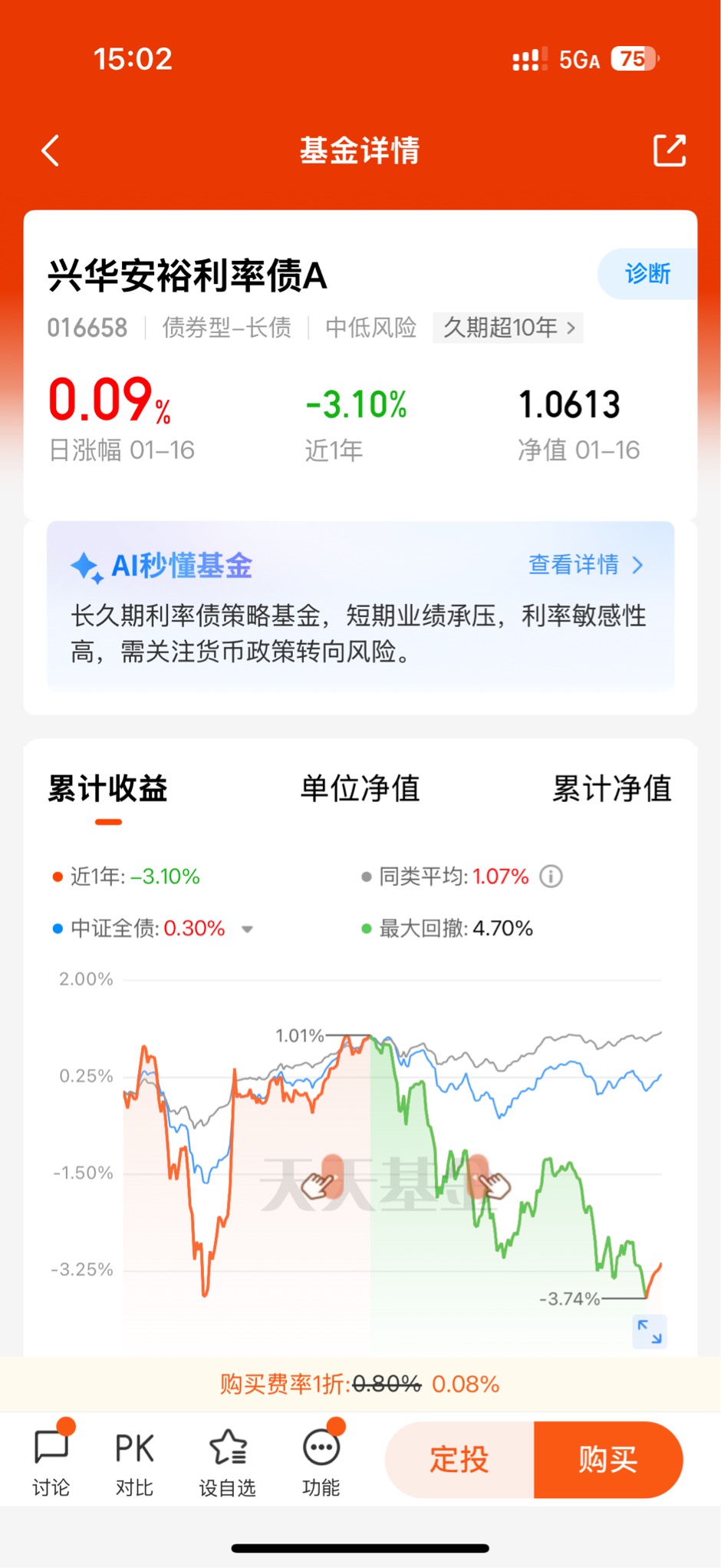 可惜的是,事情的演绎永远不会按照我们设想的剧本那样循序渐进。从2024年九月份往后,债券市场好像换了副面孔。“股债跷跷板”效应越来越厉害,动不动就来一下。重仓配置的兴华安裕利率债债券基金也不再是那个温柔乡了,净值波动加大,时不时就破个大“蛋”,一周的收益可能就一天就给我跌没了。眼看着之前慢慢攒起来的幸福感一点点被侵蚀,心里真是又慌又无奈,感觉好日子离我而去了。