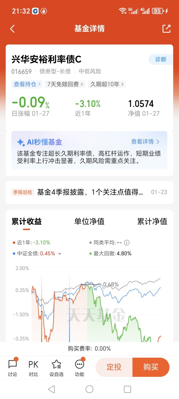 #晒2025收益,启2026新程!# 去年初,我还在为股市的起伏焦虑,直到朋友推荐了兴华安裕利率债C。看到基金历史业绩,成立两年多累计收益超15%,波动率不到3%,我决定试试。基金经理李静文反复强调“骑乘策略”和“预期差操作”,当时不太懂,后来才明白这是通过分析利率曲线形态和捕捉市场预期变化来增厚收益。记得年中市场利率突然上行,我的账户连续三天微跌,吓得赶紧查资料,结果发现基金经理早已提前减仓长债,换成了短久期品种,净值很快企稳回升。这次经历让我学到:债基不是“躺赚”,更需要基金经理的专业研判。这一年,我逐渐养成了定期检视账户的习惯。发现兴华安裕的票息收入每月稳定到账,加上波段操作的资本利得,全年收益达到4.2%,远超我的预期。现在,我的理财目标更清晰了:一是用工资定投兴华安裕C,积少成多;二是学习债券知识,比如研究利率周期和货币政策,不再盲目跟风;三是探索“债基+货币基金”的组合,在保证流动性的同时提升收益。最近看到央行宣布2026年继续宽松政策,我更加坚信利率债的长期价值。理财路上难免有风雨,但只要选对方向,每一步都是向更好的自己靠近。2026年我将继续秉承长期主义,不追逐热点,而是通过多元、均衡的配置,让投资组合更健康、更具韧性,稳步驶向财富增长的彼岸。