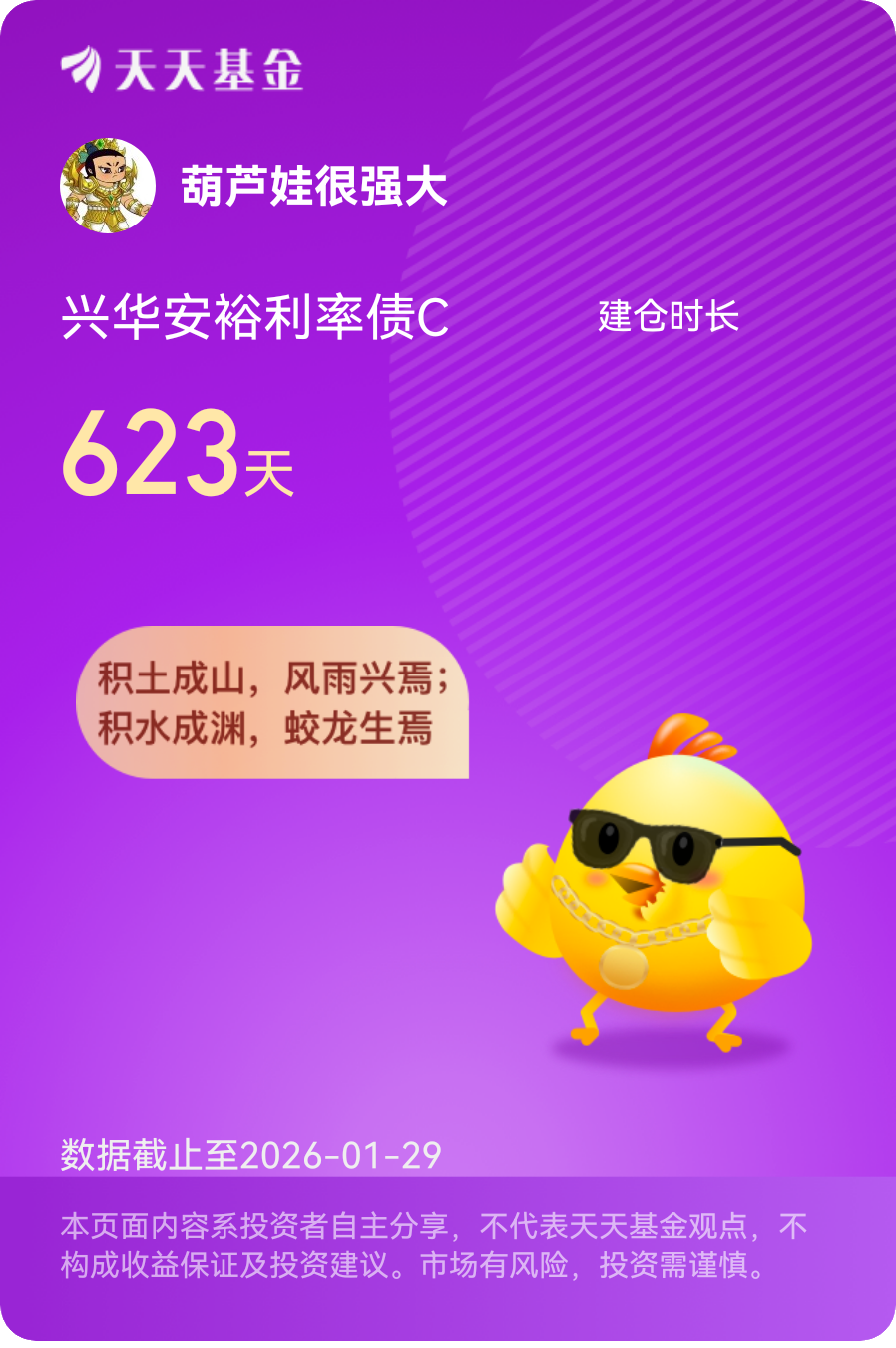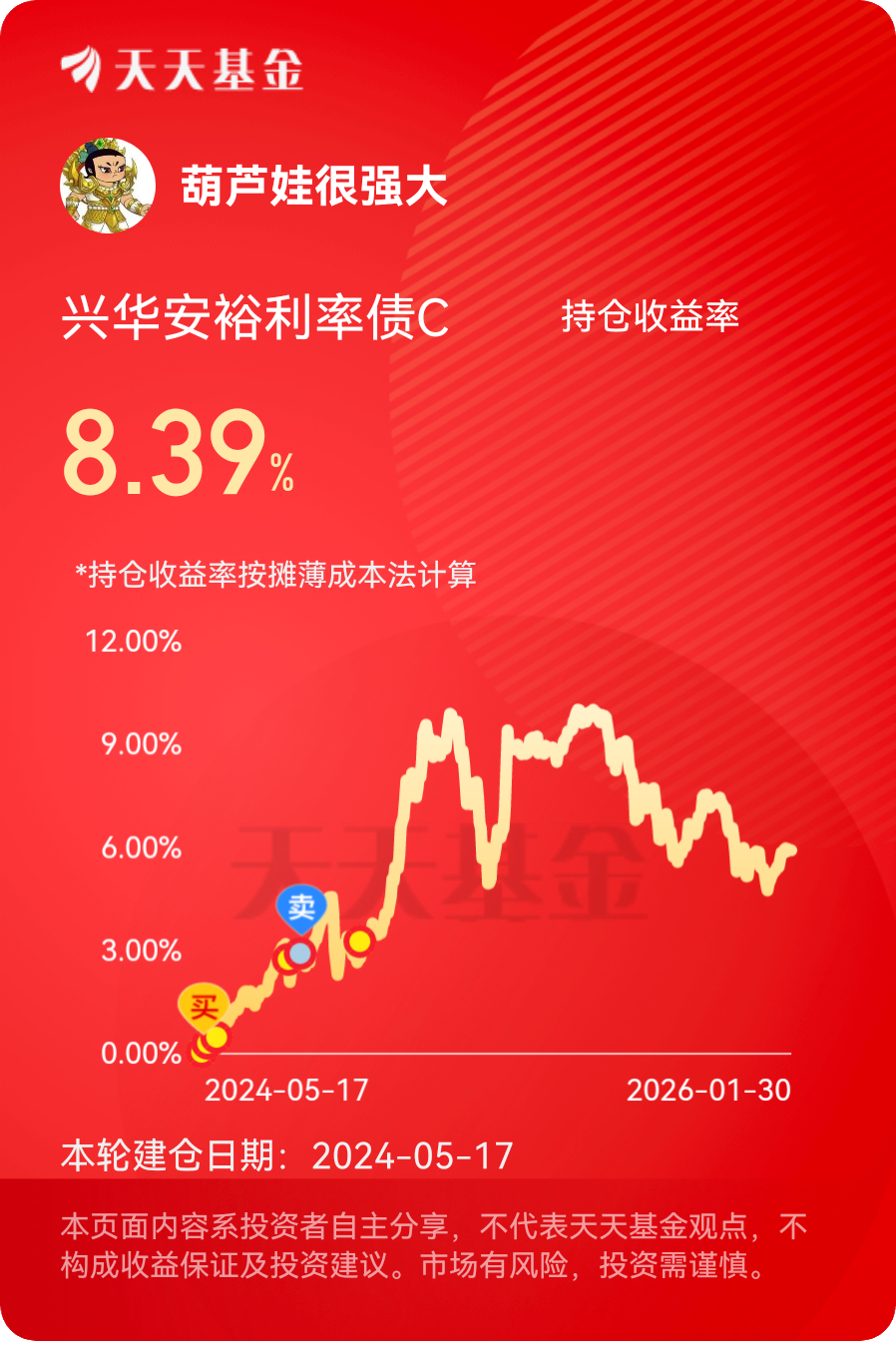 在经过以上的认真的思考之后,我持有的是兴华安裕利率债C(016659),持有至今,它给我带来了相当不错的投资体验,我相信它在未来的表现会更上一层楼的。@兴华基金