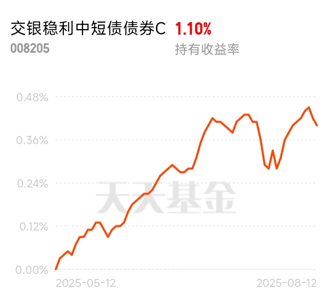 持有$交银稳利中短债债券C$ 不到半年时间,目前1.1%收益,比存银行收益还是多些