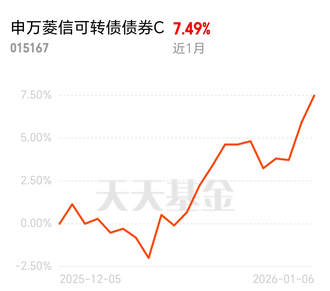 近期权益市场结构性行情凸显,转债跟着热门板块涨,表现亮眼。申万菱信可转债 C 近 1 月 7.49%,近期排名同类前列,债券打底股票增强,利息 + 收益双丰收,进场正当时。$申万菱信可转债债券C$
