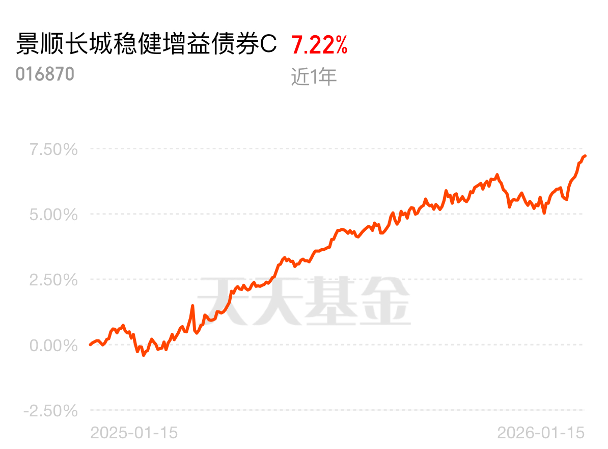 信用债经纪商成交笔数激增,机构配置需求升温,债市跨年行情有支撑。$景顺长城稳健增益债券C$ 近 1 年 7.22%,止盈后想留仓抓机会,这只固收 + 正合适,9 连涨表现亮眼,还持续跑赢中证全债指数,不踏空跨年行情。
