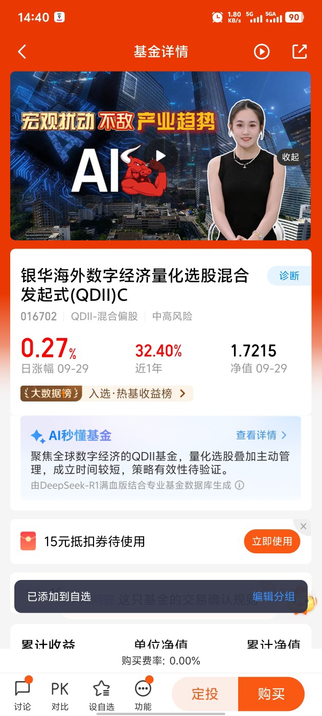 我坚定看好$银华海外数字经济量化选股混合发起式(QDII)C$ ,因为这支基金为我提供了一键配置美股及全球科技巨头的便捷途径。它主要布局美股市场的AI科技巨头及半导体龙头股,旨在直接分享全球最前沿科技创新的发展红利。当A股科技板块表现疲软时,它能够有效分散单一市场风险,有效得帮我对冲风险。@银华基金
