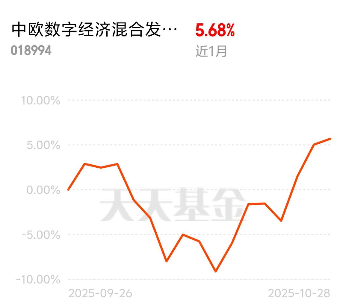 市场一举突破4000点,牛市起点实锤了,中美关系缓和让风险资产更吃香。科技主线不变,算力需求最确定,中欧数字经济混合C近1个月涨5.68%,今天调整,赶紧领30元红包补仓。