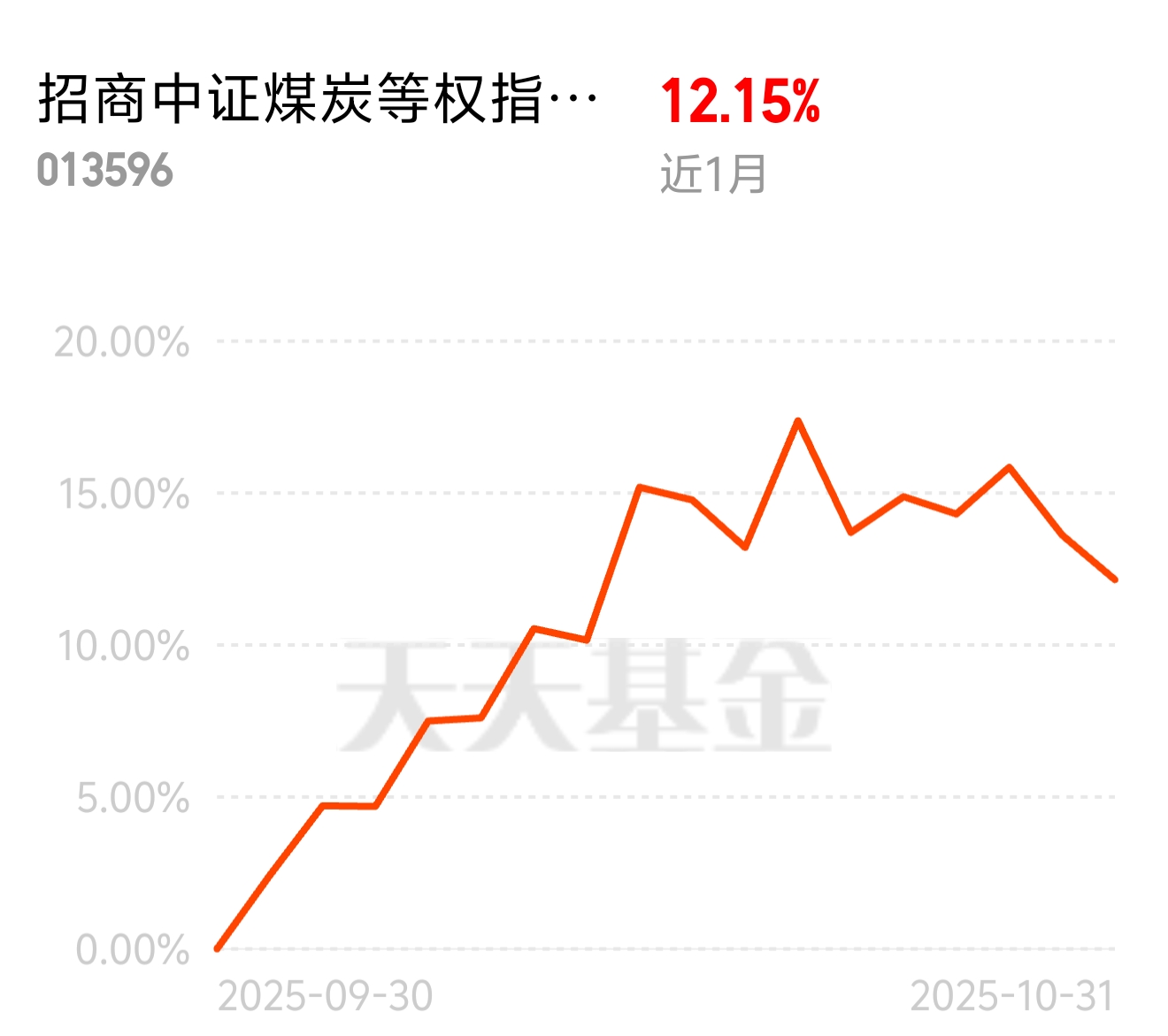 煤价的下行风险释放完了,现在往上的空间大,四季度上行空间打开。$招商中证煤炭等权指数(LOF)C$ 近1个月12.15%,上行空间带收益。