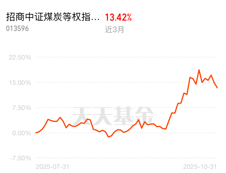 11月7号左右很多地方开始供暖,需求集中释放,四季度需求高峰到。招商中证煤炭等权指数C近3个月13.42%,高峰需求高峰收益。