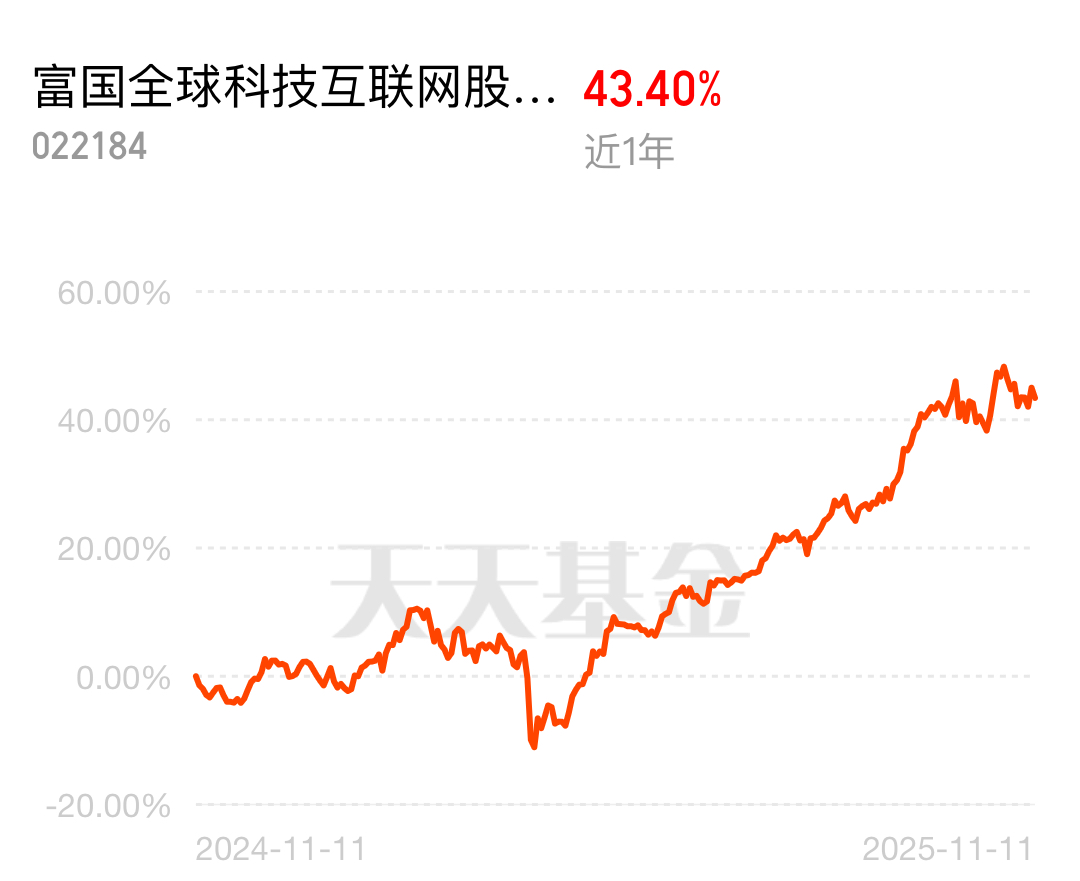 手里有银华海外数字经济,又配了点富国全球科技互联网C,调仓后更扎堆美股科技龙头,像英伟达、微软、台积电都在前十大,近一年涨了43%,领先纳指还有额度。