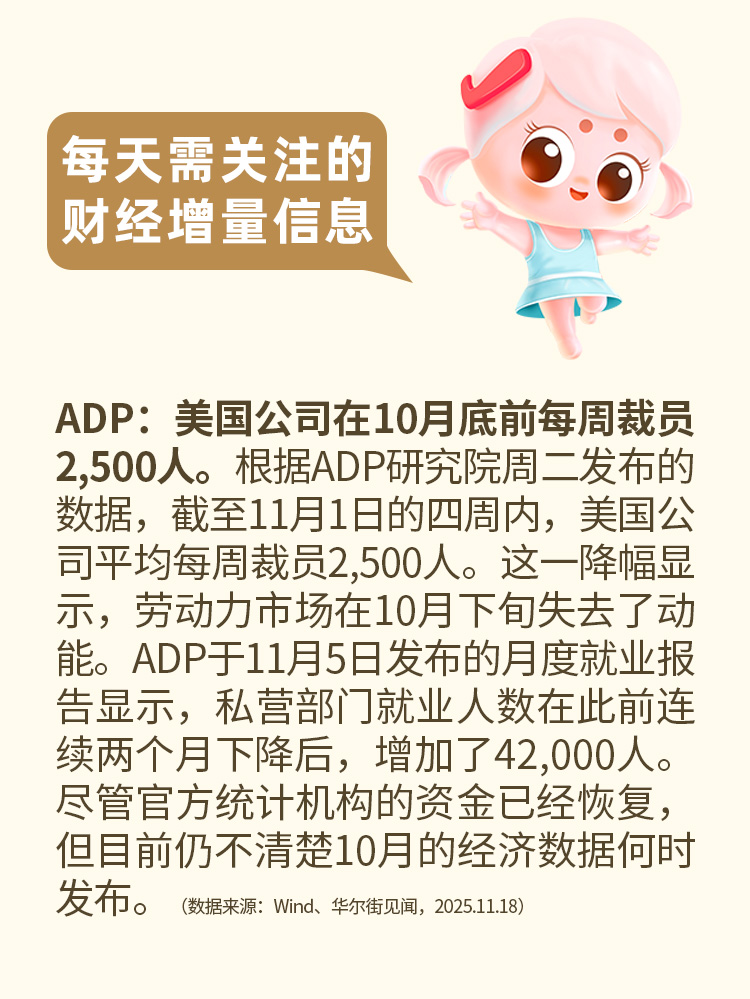 【每天需关注的财经增量信息】ADP:美国公司在10月底前每周裁员2,500人