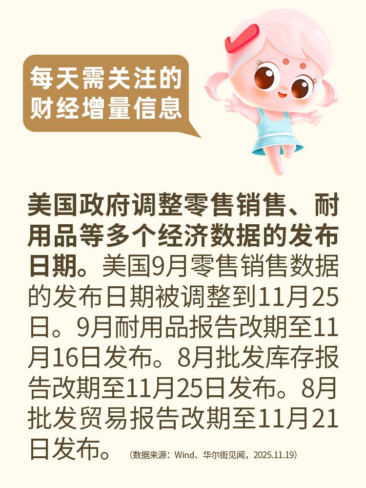 【每天需关注的财经增量信息】美国政府调整零售销售、耐用品等多个经济数据的发布日期
