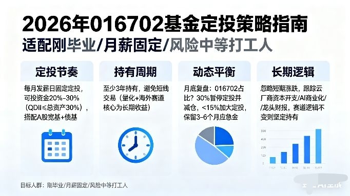 结合自己的实盘体验和行业趋势,我整理了2026年针对016702的定投策略,完全适配刚毕业、月薪固定、风险承受能力中等的打工人,不激进、不躺平,稳扎稳打拿收益: