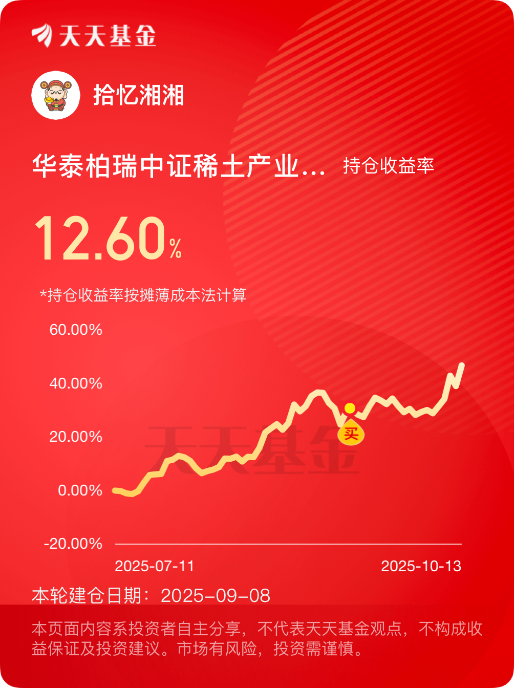 昨天稀土板块集体爆发,我的$华泰柏瑞中证稀土产业ETF发起式联接C$涨了5.56