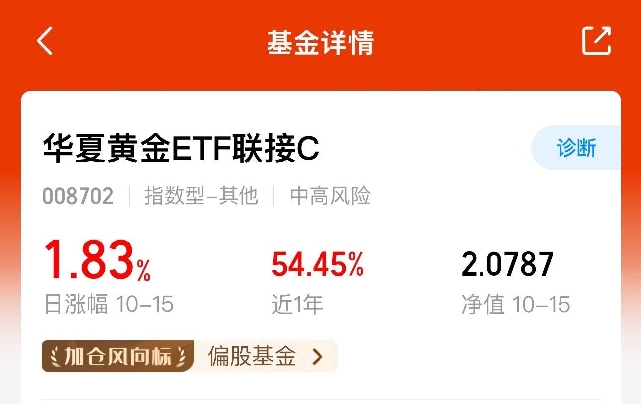 当前国际贸易局势紧张、地缘风险升级、美联储降息预期以及乱局共同作用下,黄金的避险需求居高不下,昨天黄金再次刷新历史新高,$华夏黄金ETF联接C$的上涨势头强劲,昨天收益1.83%,连红3天了,都成为加仓风向标了