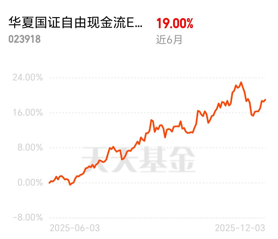 近期市场风格切换频繁,震荡也大,老老实实做些避险投资比较好,手里这基整体比较稳,自由现金流指数比黄金更加稳定,近6个月收益19.11%,$华夏国证自由现金流ETF发起式联接C$挺稳健,不错