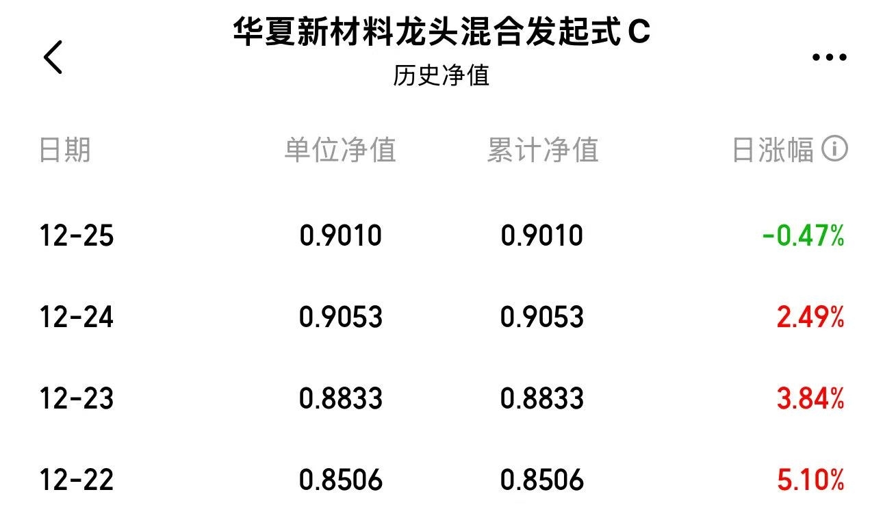 前几天涨的太猛了,趁调整抓紧加仓,毕竟这里近1个月收益17.21%,1周收益就有8.76%,前几天3天收益就能有11.43%,弹性大,$华夏新材料龙头混合发起式C$选股布局AI新材料,值得布局期待下