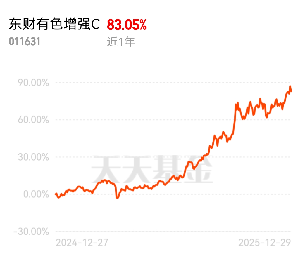 战略金属成为香饽饽,中国掌控镓锗定价权,有色板块价值重估持续。东财有色增强 C 近 1 年 83.05% 的收益实打实,紧跟政策和产业趋势,布局优质赛道。