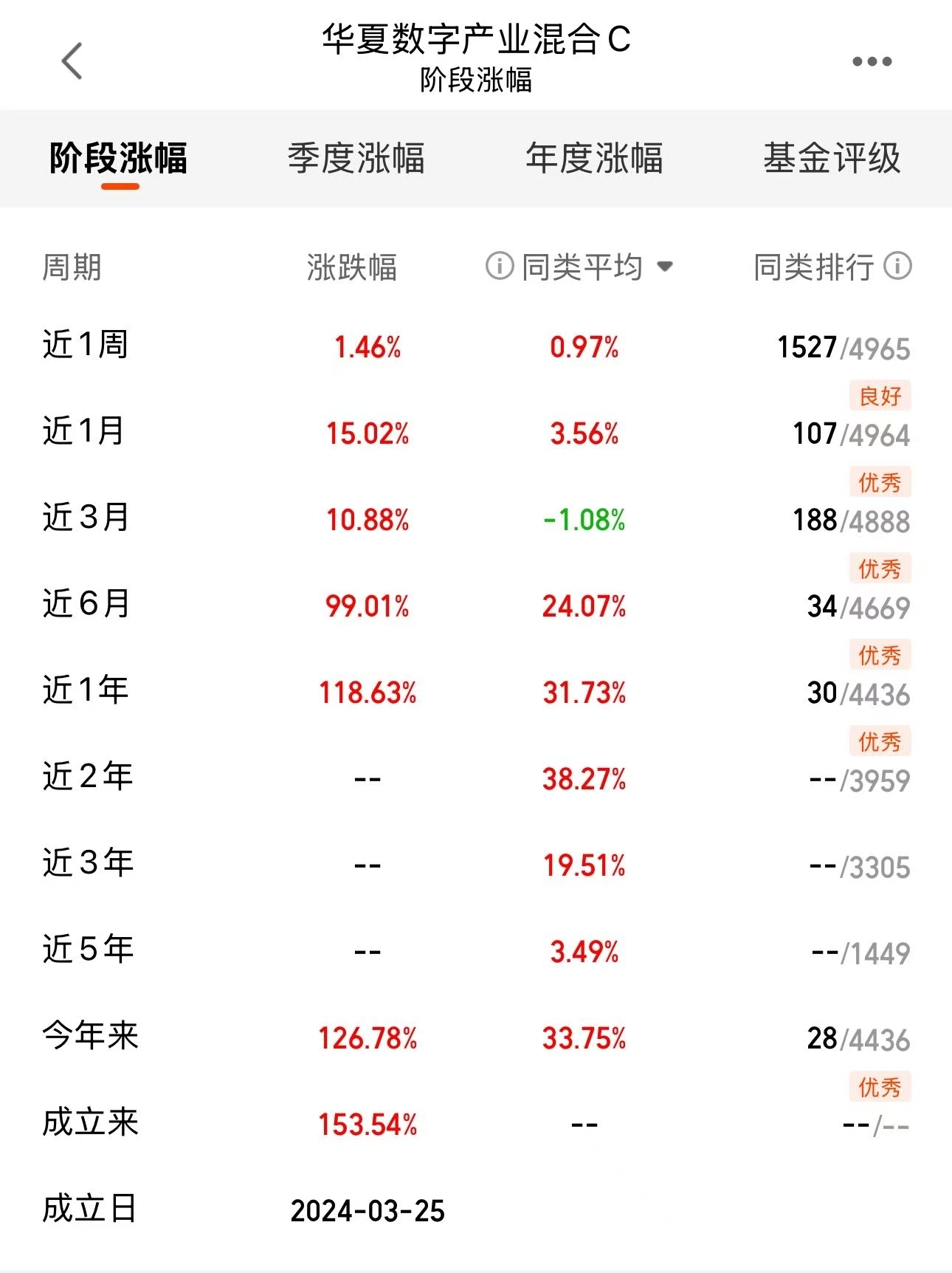 逢低多布局,AI算力需求还在持续扩大,$华夏数字产业混合C$近一年收益118%+,同类排名优秀(30/4436),业绩弹性高,给机会就冲!